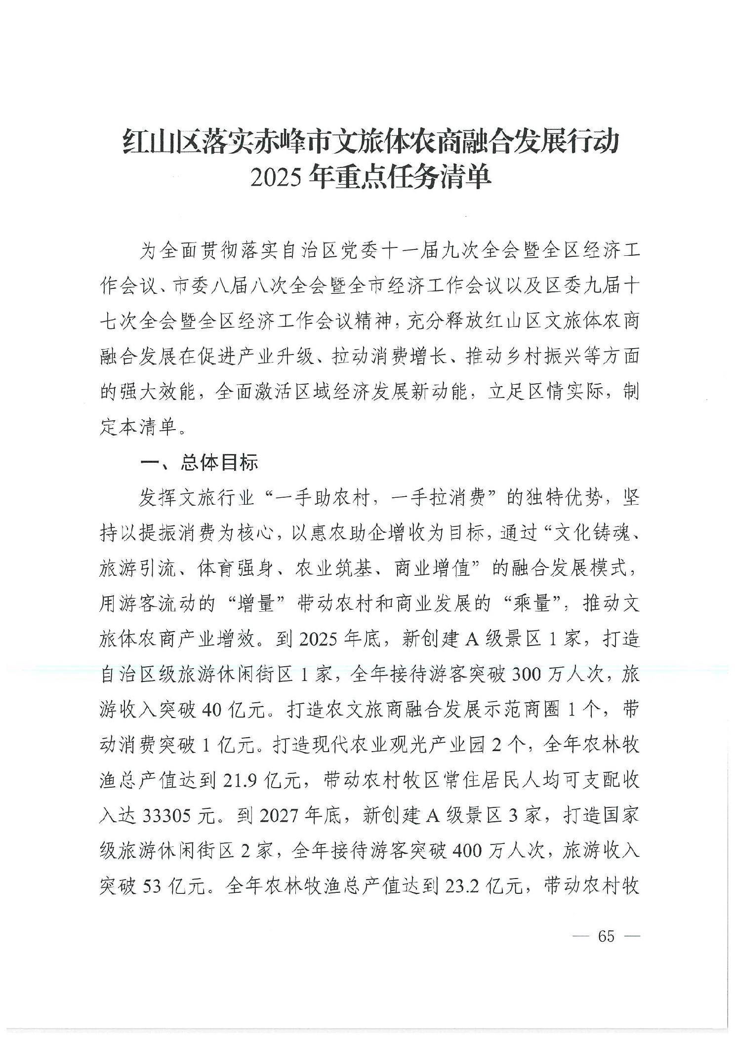 红山区落实赤峰i市文旅体农商融合发展行动2025年任务清单