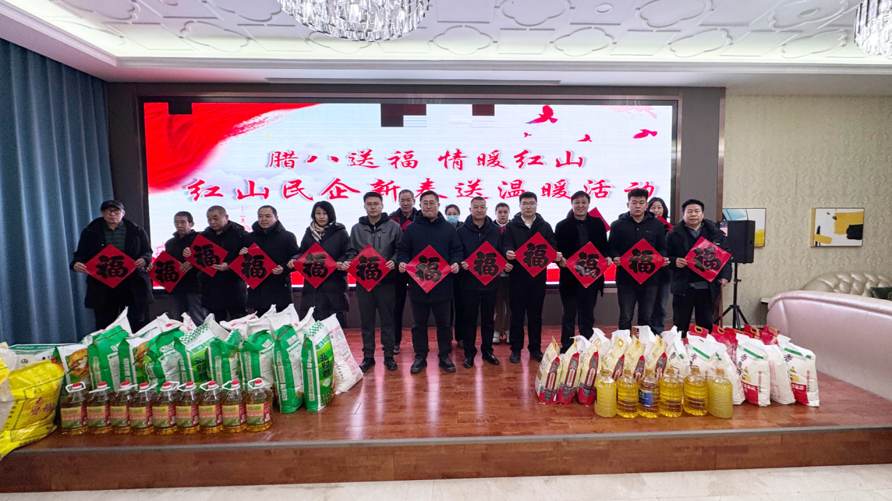 近日,红山区委统战部联合区工商联等10家单位,携手20余名民营企业家代表开展 “腊八送福,情暖红山” 新春送温暖活动。红山区委副书记、政法委书记韩耀新,区委常委、统战部部长苗伟参加慰问。