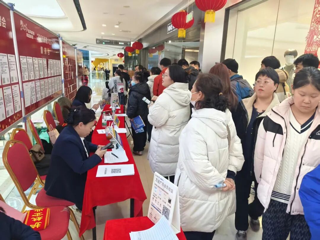 自2月23日起,四天的红山万达专场招聘会成为本次系列活动的一大亮点。本次招聘会共吸引150余家企业参会,提供就业岗位6600余个,涵盖制造业、服务业、新能源、信息技术、行政管理等多个领域。现场累计接待求职者2万余人次,接收简历220余份,初步达成就业意向2000余人,同步直播观看量达6121人次,实现供需两旺、成效显著。