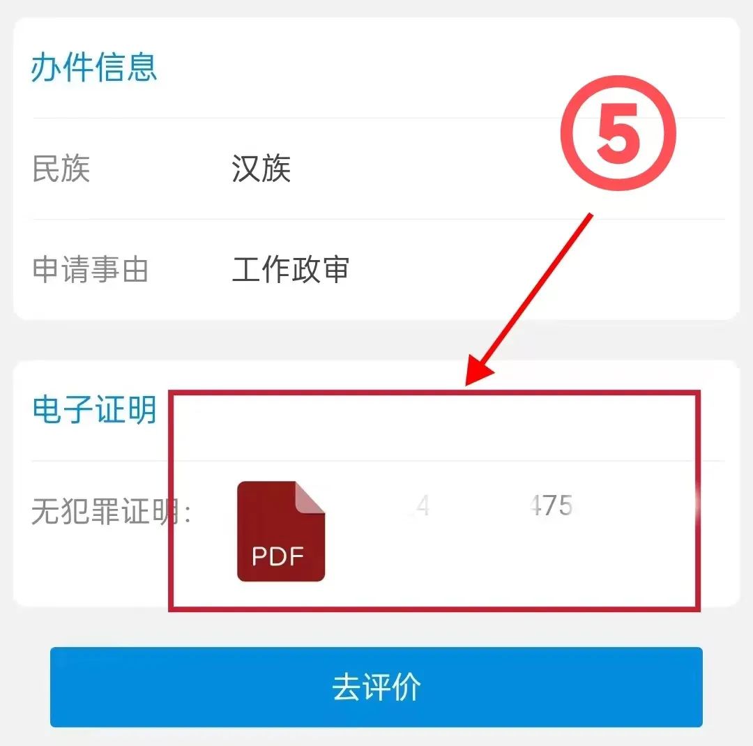 ⑤ 在“我的办件”页面底部即可查看或下载电子版证明。