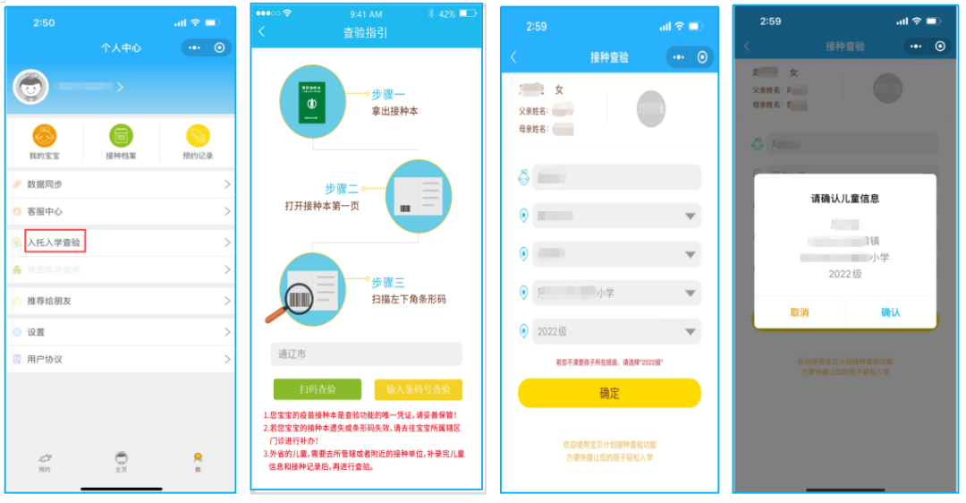 ④再次核实儿童学校信息,点击“确认”,完成查验。