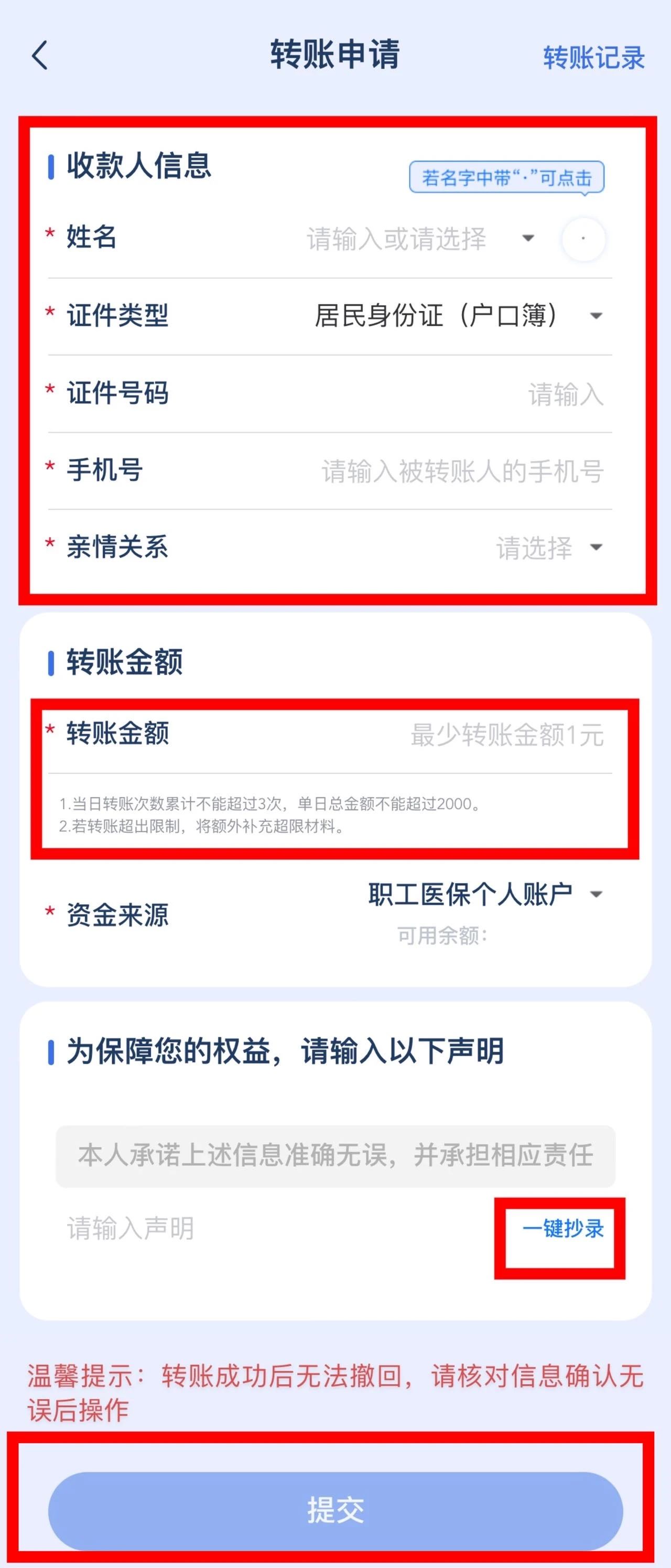 1.在“医保钱包”界面,点击“医保钱包转账申请”: