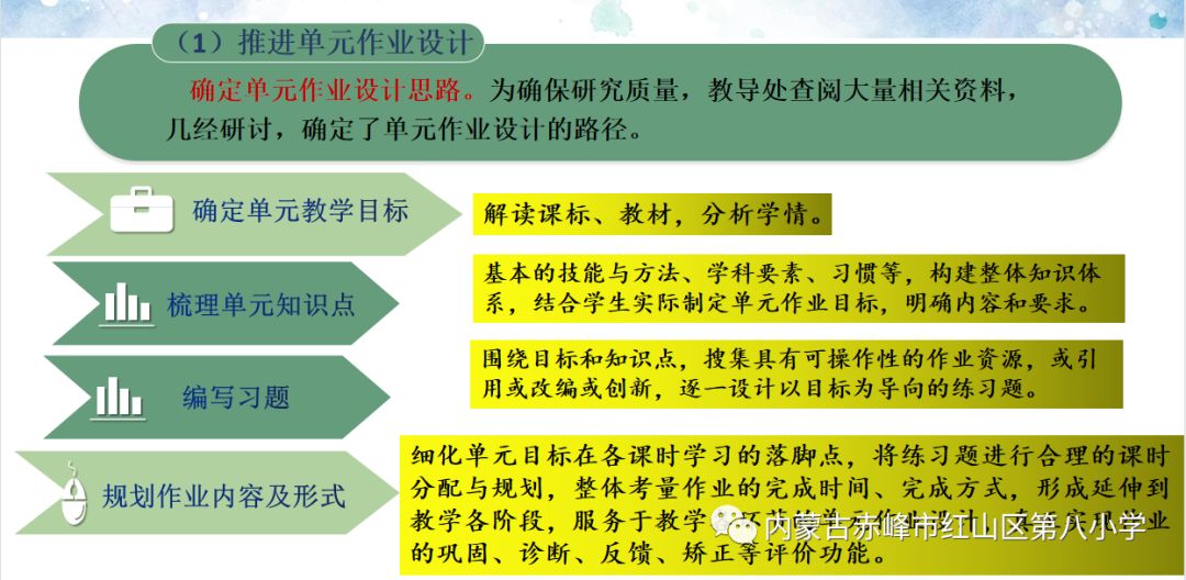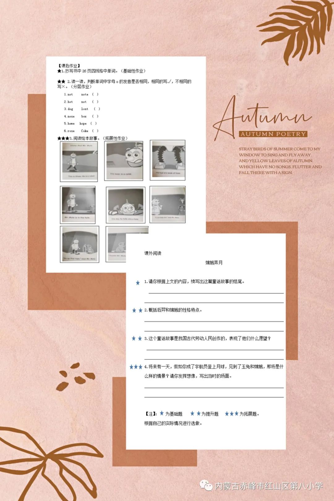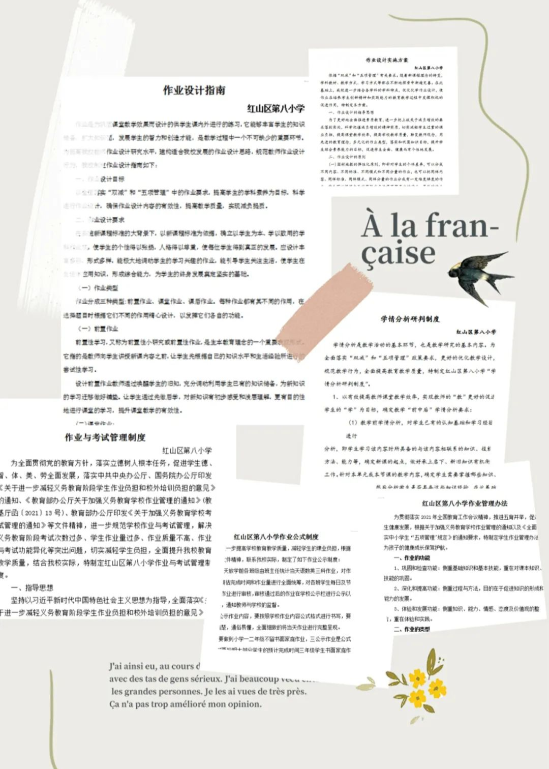 本学期,是全面落实“双减”工作的第一个学期,“减负、提质、增效”成为学校教育改革的主旋律。为了更好地贯彻落实“双减”政策,切实减轻学生作业负担,红山区第八小学的教师们努力践行着一条作业变革之路,积极探索以作业设计“小杠杆”撬动减负提质大工程,助力教育教学质量更上新台阶。