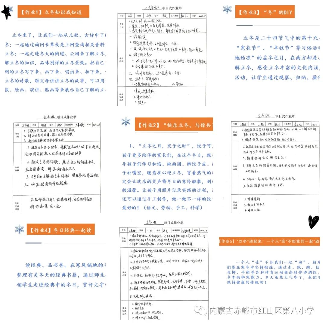 为能够发挥不同学生的特长,我校在以往单一的假期实践作业的基础上,推出立足具体情境,融“智育、体育、美育、劳育、德育”于一体的项目式学科融合作业,让学生在多角度选择和完成任务的过程中落实五育并举。这种跨学科的项目式作业形式,不仅能体现分层作业的理念,也调动了学生多种感官进行学习,综合提升了学生的核心素养。日前,我们立足节日情境,通过挖掘二十四节气——“立冬”节气中的教学元素,紧扣“真实情境”,形成了各年级项目式学科融合作业《立冬啦!》,通过自主探究、合作体验、辩证研讨等形式,学习节气知识,发展学生综合能力,传承传统文化,践行“学以致用”。