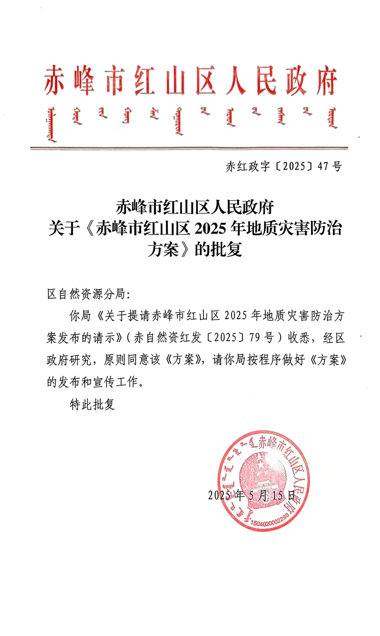 为切实做好2025年度全区地质灾害防治工作,避免或最大程度减少地质灾害给人民群众生命财产造成损失,根据《地质灾害防治条例》(国务院令第394号)、《内蒙古自治区突发地质灾害应急预案》和《赤峰市2025年地质灾害防治方案》,结合我区生态人文环境和地质灾害防治工作实际情况,制定本方案。