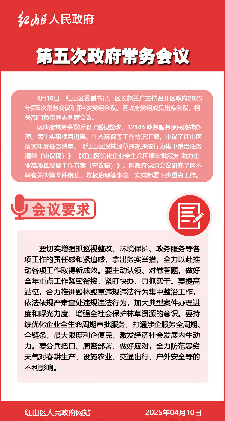 红山区召开区政府2025年第5次常务会议