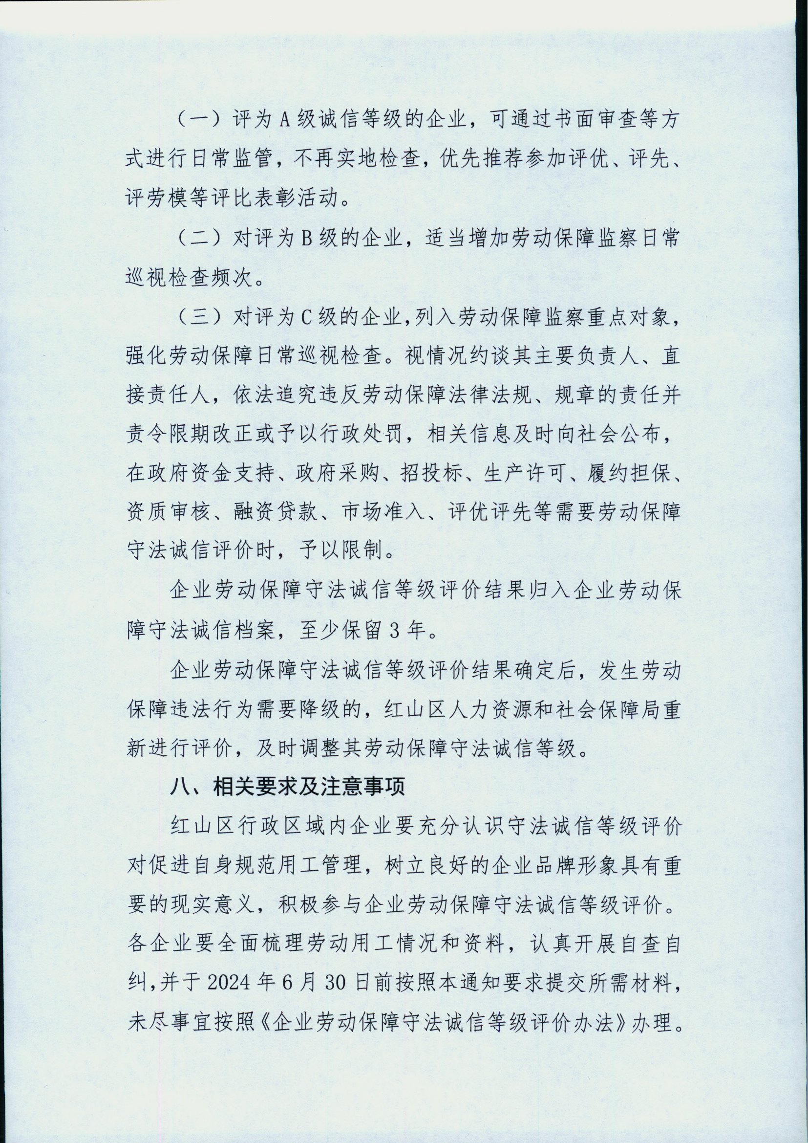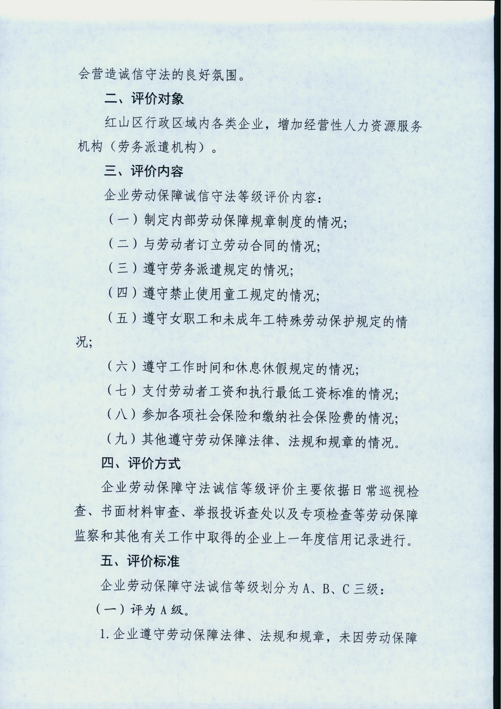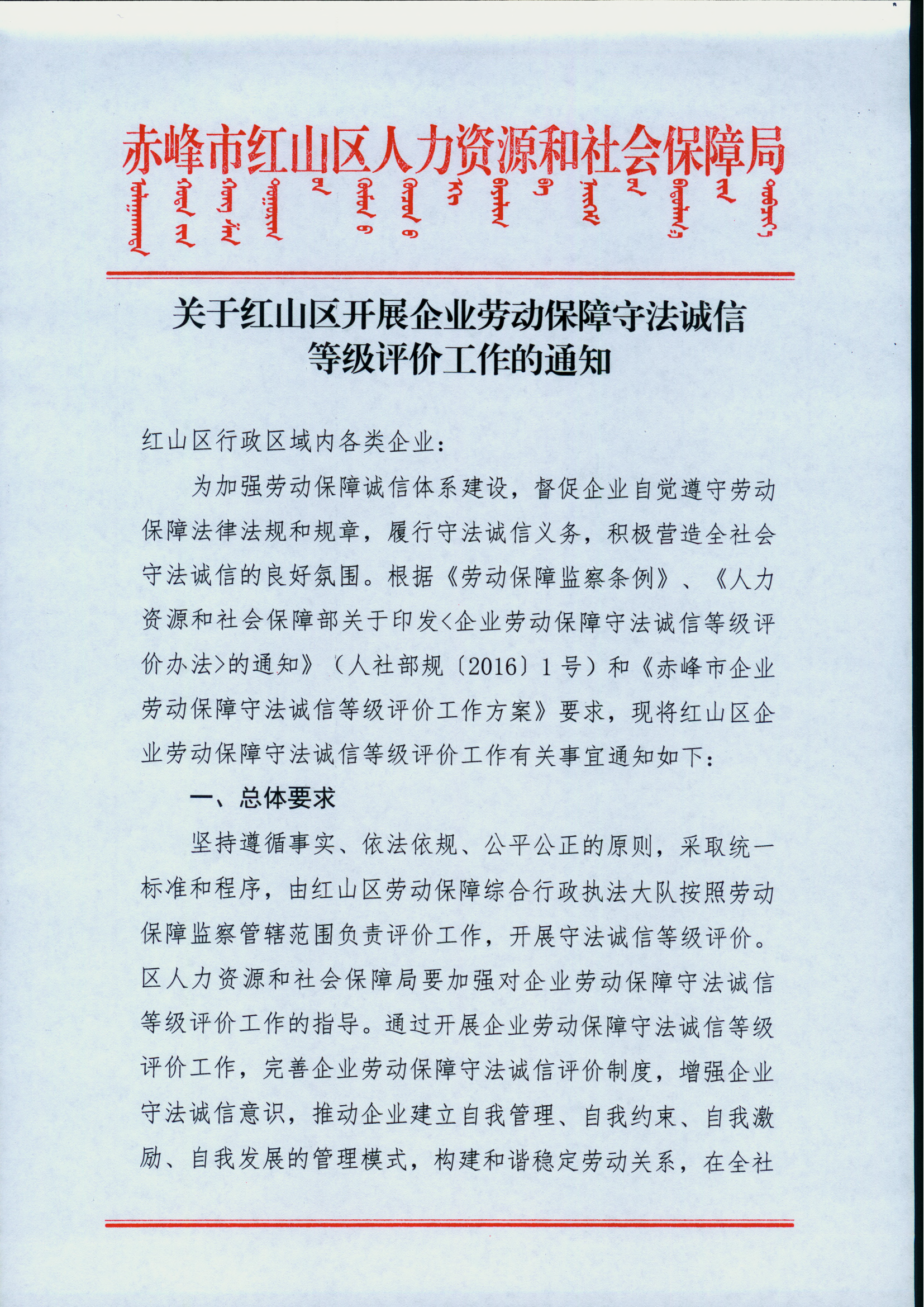 关于红山区开展企业劳动保障守法诚信等级评价工作的通知